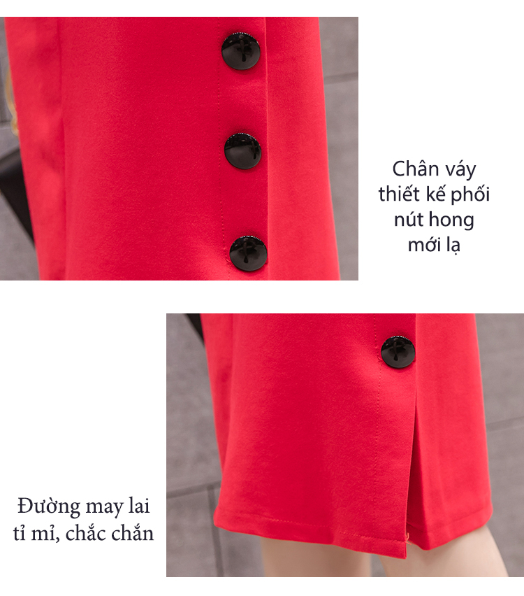 - Chân váy thíêt kê dạng lưng cao phôí thêm petlum tạo điểm nhấn cá tính sang trọng thanh lịch