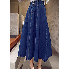 Chân váy jeans xanh dáng dài chữ A xẻ tà phía sau