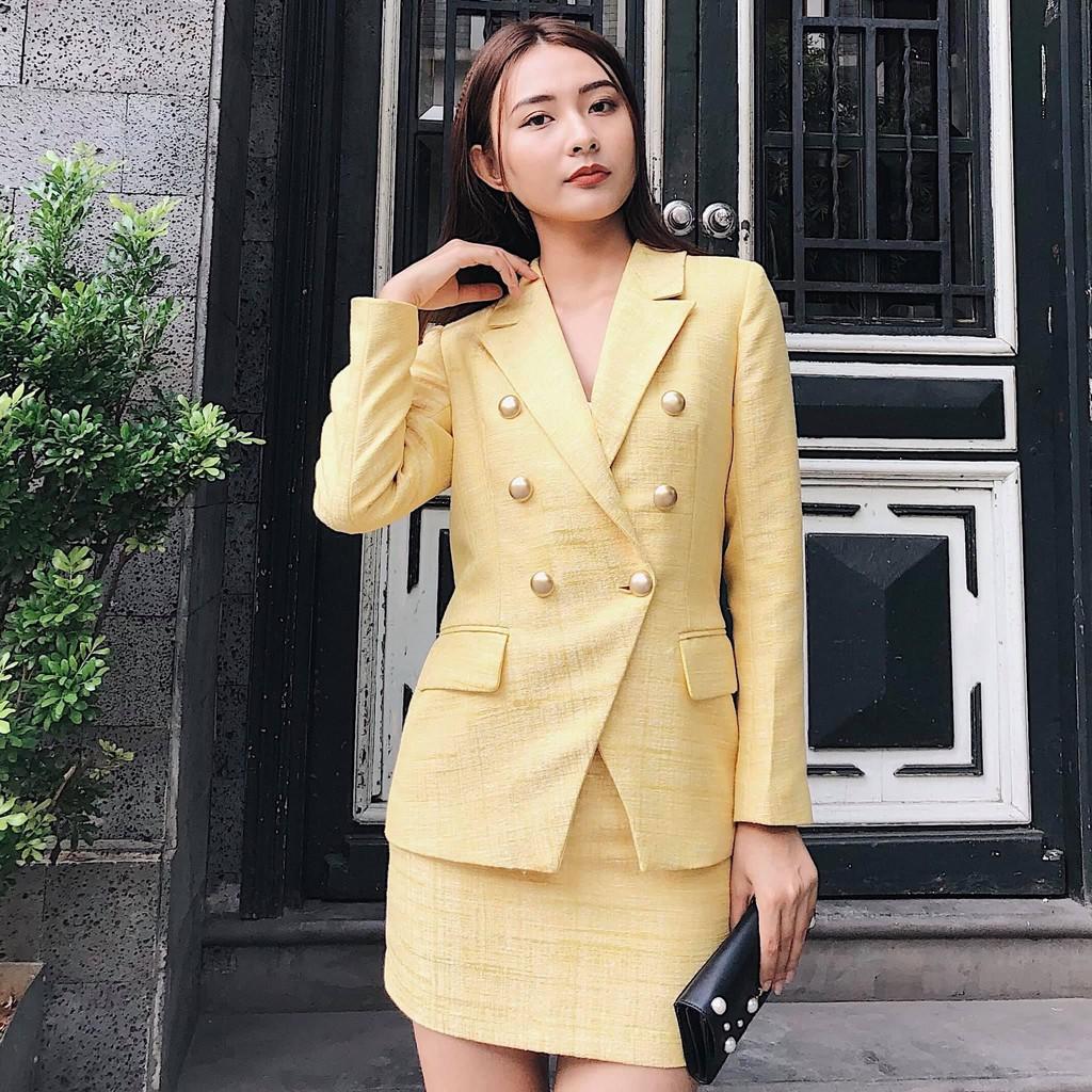 Trinh Hoàng set váy ngắn cùng áo dạ Tweed 1478 #shorts