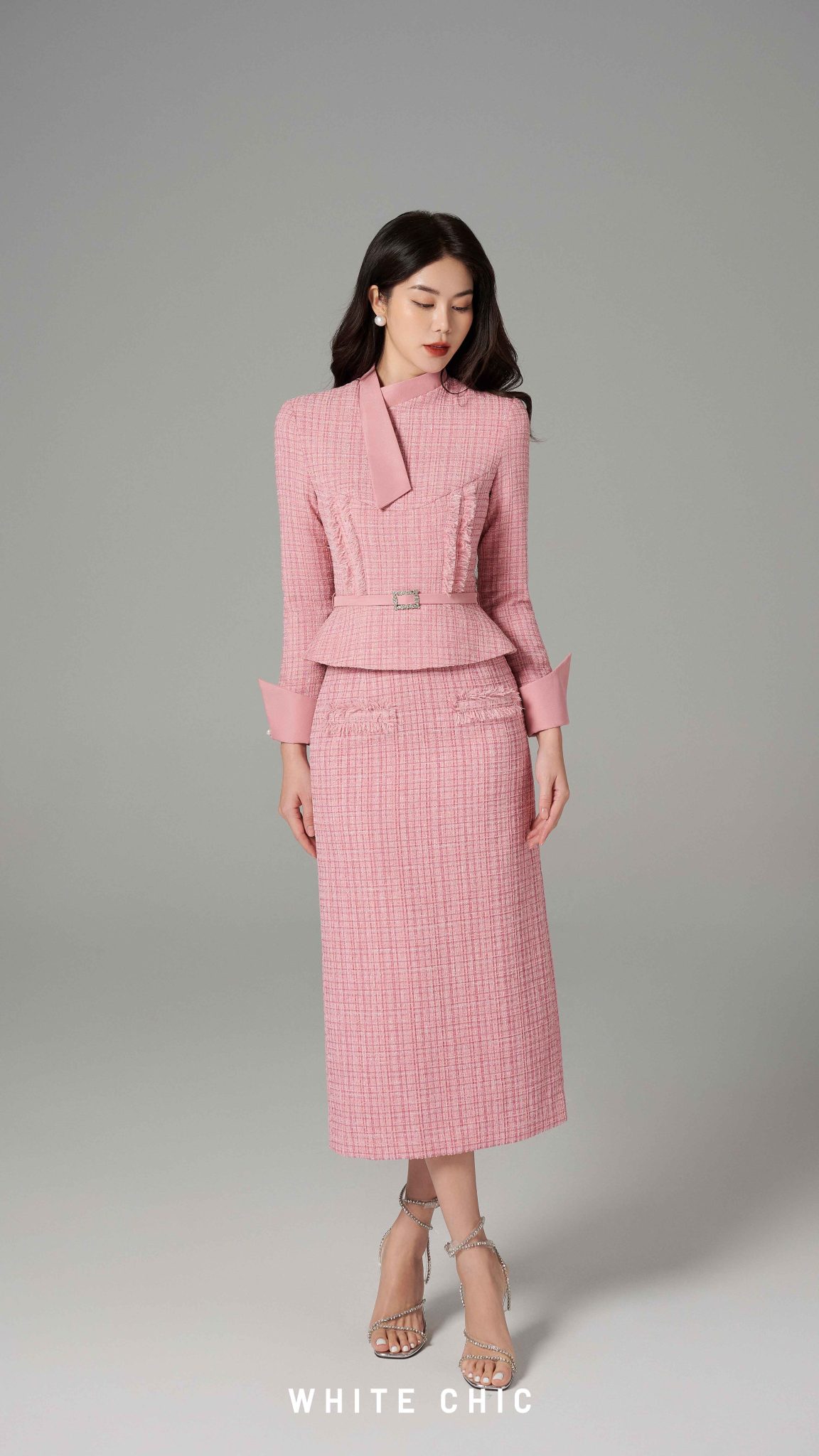 Thiết kế chân váy ôm chữ A vừa vặn tôn dáng với đường xẻ sau tinh tế mang đến sự linh hoạt và uyển chuyển trong từng bước đi. Váy có độ dài qua gối