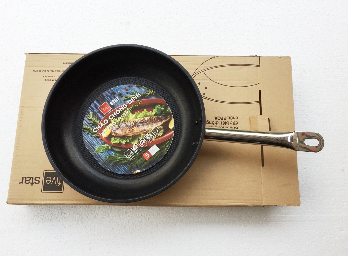 Sở hữu thiết kế hiện đại, tiện lợi chảo chống dính Five Star 30 cm sẽ là trợ thủ đắc lực không thể thiếu trong căn bếp của mọi gia đình. Sản phẩm được làm hoàn toàn từ chất liệu inox 430 cao cấp, cùng lớp sơn đặc biệt hoàn toàn không chứa PFOA nên an toàn tuyệt đối cho sức khỏe người dùng. Đặc biệt, với kích thước tương đối lớn, rộng 30cm cao 6m, chảo chống dính Five Star giúp bạn thoải mái chế biến thức ăn nhiều hơn, nhanh chóng chóng và khả năng giữ nhiệt cực tốt.