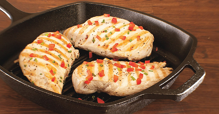 Chảo gang Lodge có rãnh chuyên dụng cho các món nướng, áp chảo