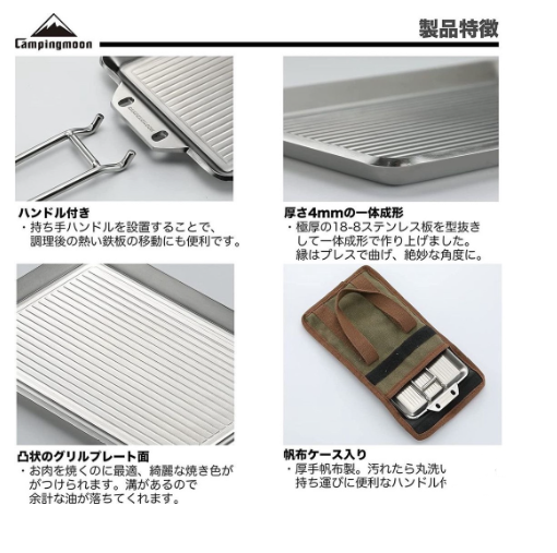 MÔ TẢ SẢN PHẨM CHẢO INOX GẤP GỌN CAMPINGMOON DO-21 * THÔNG TIN SẢN PHẨM - Thương hiệu: Campingmoon - Mã sản phẩm: DO-21 - Chất liệu: Thép không gỉ - Kích thước (LxWxH): 210x140x4mm,