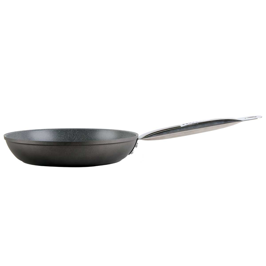 Chiếc chảo thanh lịch này từ Bộ sưu tập Burgundy của chúng tôi được làm bằng nhôm rèn với lớp phủ đá cẩm thạch chống dính. Đáy cảm ứng, được tạo ra với sự hỗ