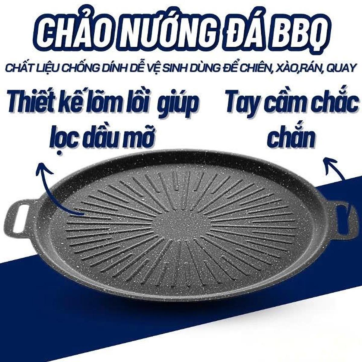 Chảo nướng đá chống dính không dầu Hàn Quốc size 32cm chảo nướng thịt BBQ dùng được cho mọi loại bếp