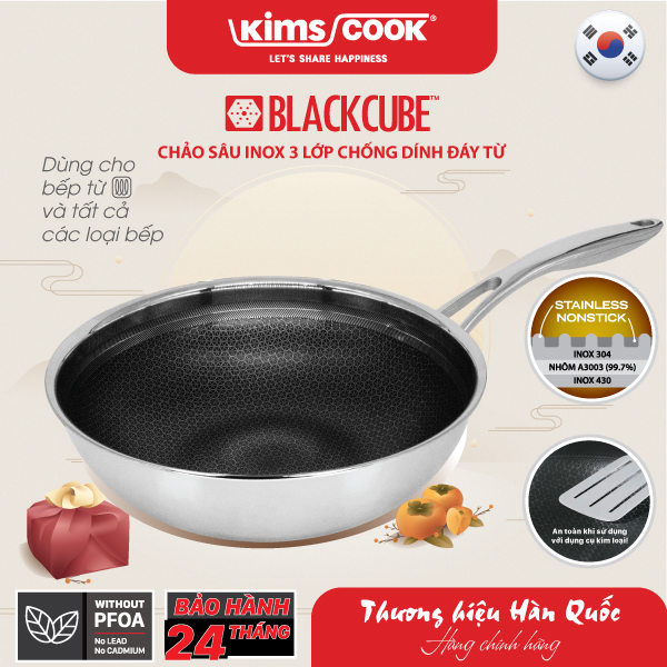 Chảo sâu Blackcube INOX 3 lớp đáy từ chống dính Kims Cook.
