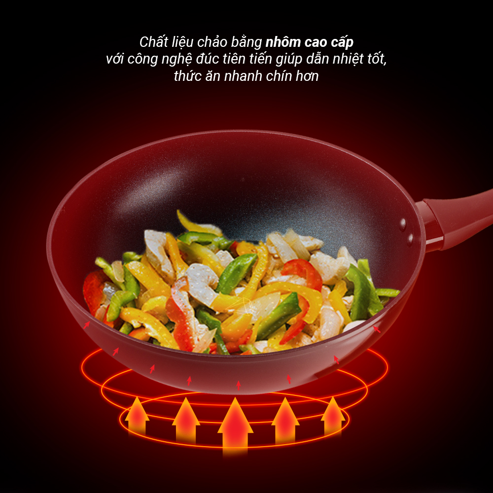 Nhờ nhiệt lượng truyền đều nên thời gian làm chín thực phẩm được rút ngắn, thức ăn trong toàn bộ lòng nồi chảo được chín đều cùng lúc. Vì thế, sử dụng chảo đáy dày mang lại những bữa ăn an toàn và giàu dinh dưỡng cho cả gia đình bạn.Tay cầm chất liệu bằng nhựa Bakelite siêu bền, chịu nhiệt cao.