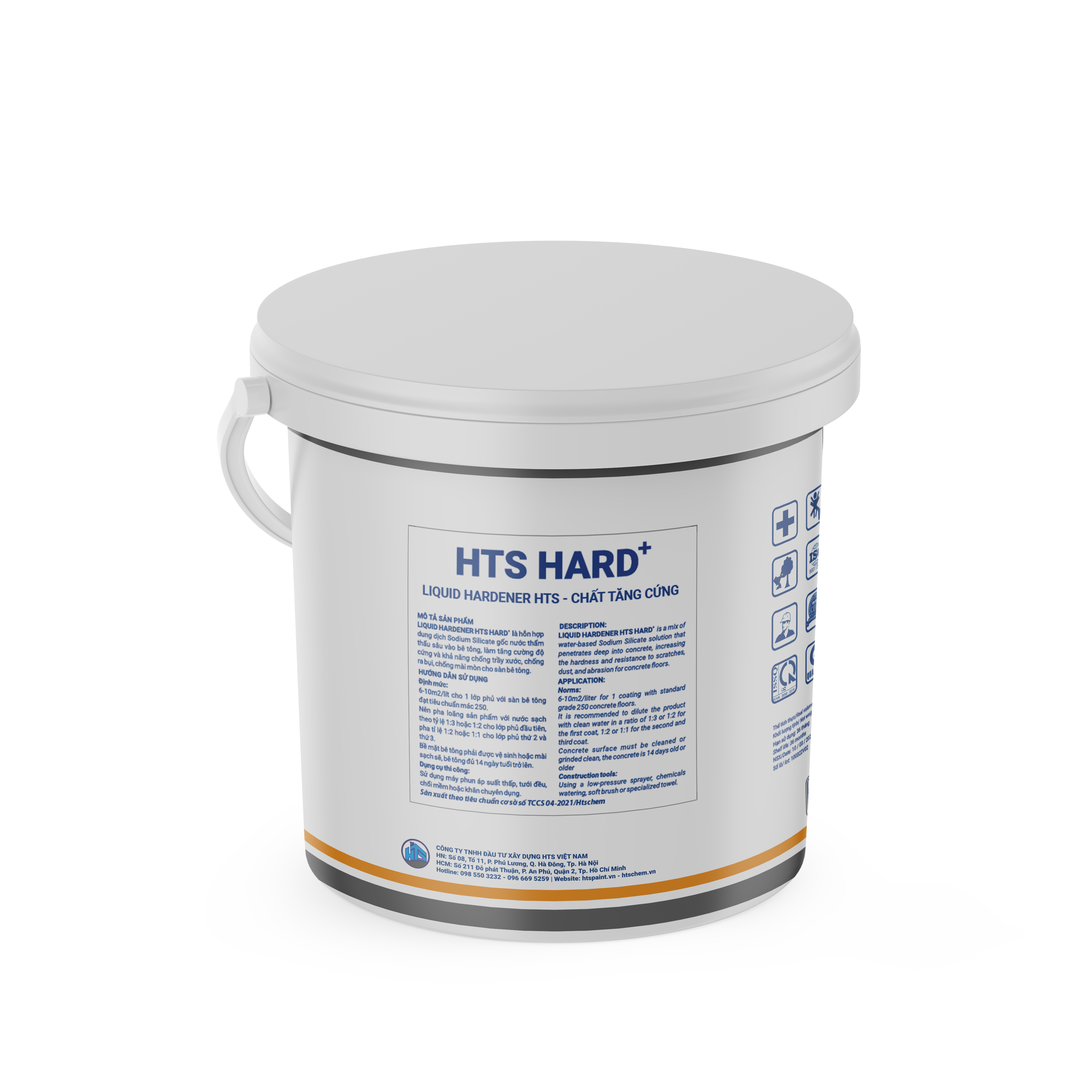 Hóa chất tăng cứng sàn Liquid Hardener HTS HARD+ là hỗn hợp dung dịch Sodium Silicate trong suốt gốc nước thẩm thấu sâu vào bê tông, làm tăng cường độ cứng và khả năng chống trầy xước, chống ra bụi và chống mài mòn cho sàn bê tông.