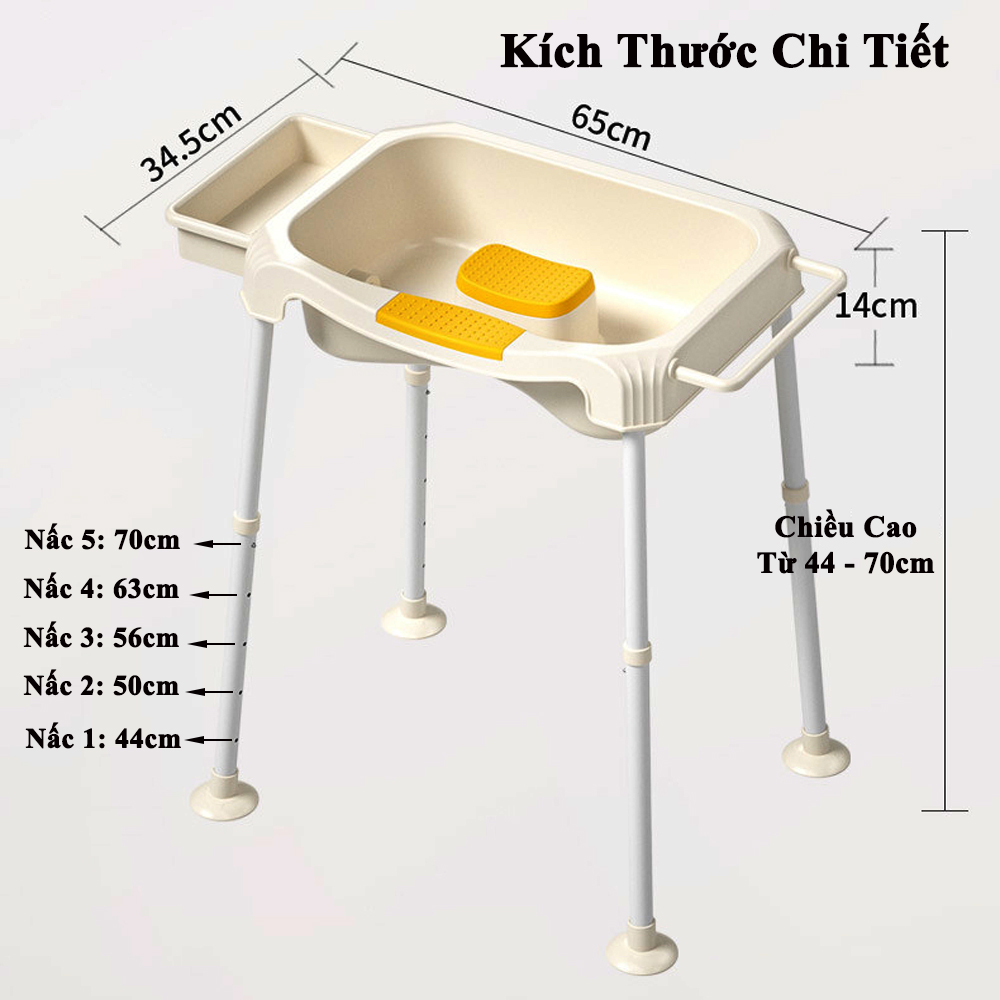 Đặc biệt có thể dùng cho người bệnh nằm trên giường đặt chậu lên và nối ống kéo dài ra xô nước để thoát nước vô cùng