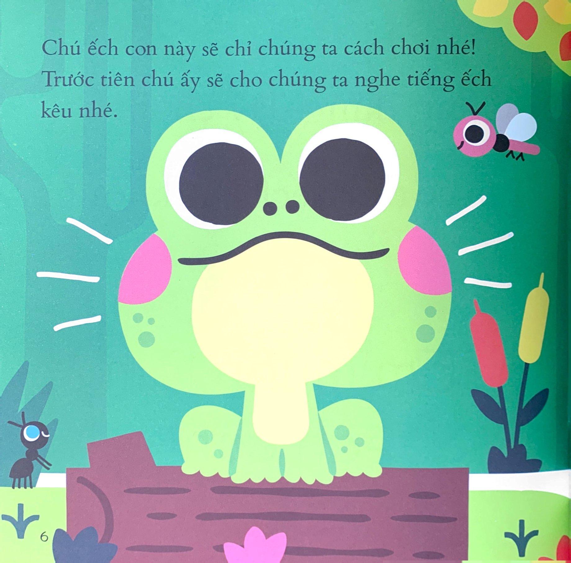 Tựa "Em muốn làm ếch con - Cùng duỗi chân và nhảy bật nào!" sẽ chỉ cho các em cách chơi. Hãy bắt chước ếch con nhảy bật lên, tõm xuống hồ và bơi, hãy cùng nhau ghép lại các hành động và nhảy điệu nhảy của ếch con.