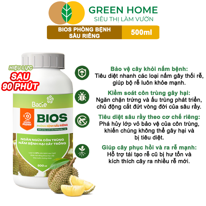 ✨Chế Phẩm Sinh Học Bacte Bios Phòng Bệnh Sầu Riêng, Green Home, Chai 500ml, Hiệu Lực Nhanh Mạnh