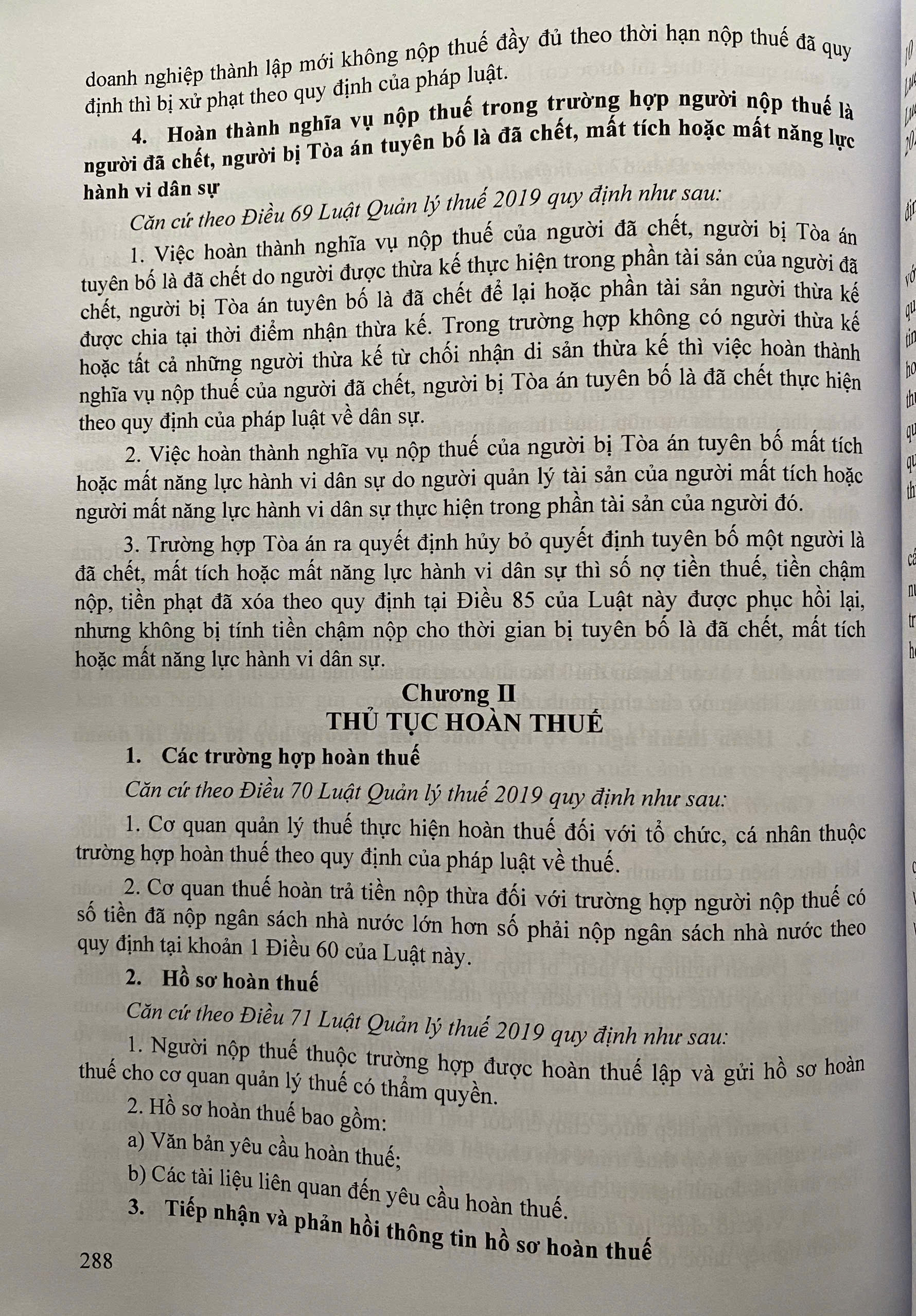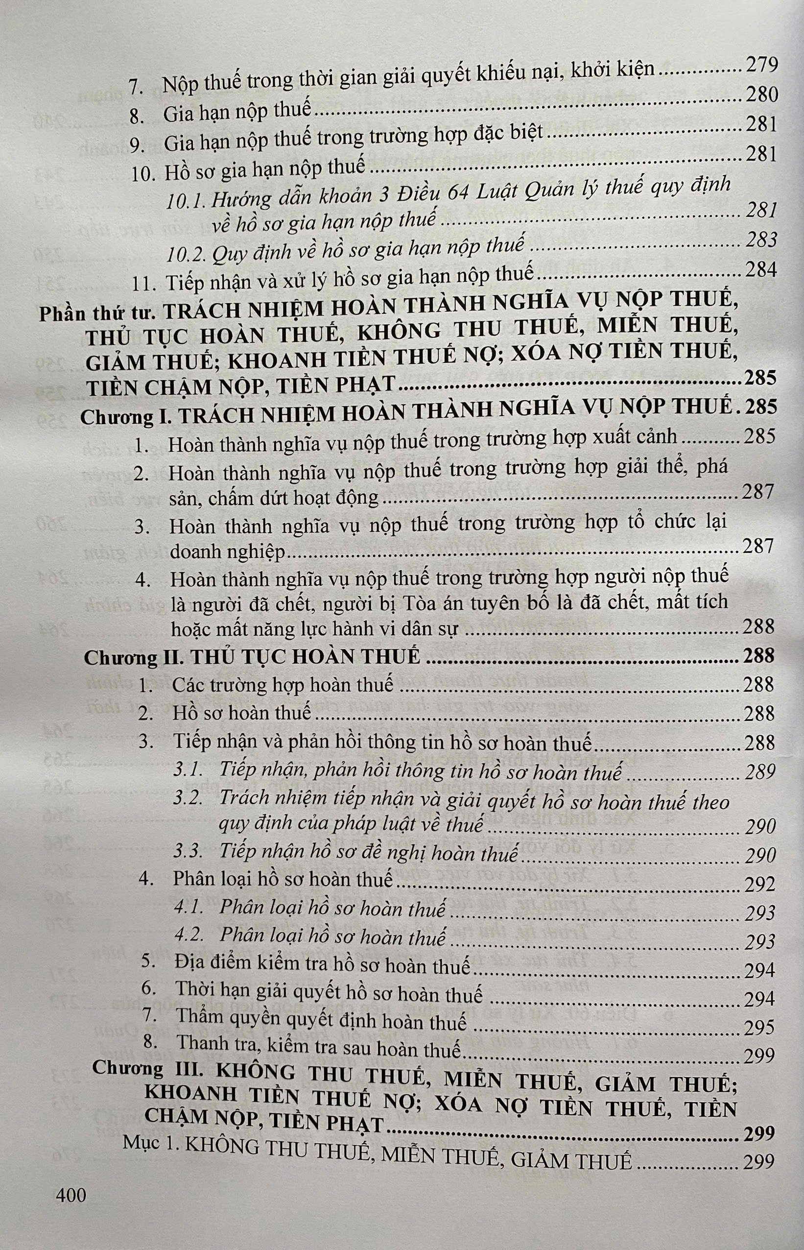 Phần thứ tư: TRÁCH NHIỆM HOÀN THÀNH NGHĨA VỤ NỘP THUẾ, THỬ TỤC HOÀN THUẾ, KHÔNG THU THUẾ, MIỄN THUẾ, GIẢM THUẾ; KHOANH TIỀN THUẾ NỢ; XÓA NỢ TIỀN THUẾ, TIỀN CHẬM NỘP, TIỀN PHẠT.