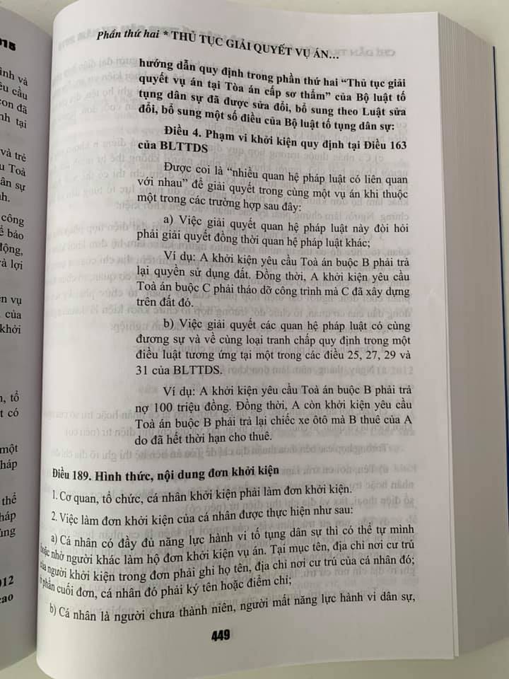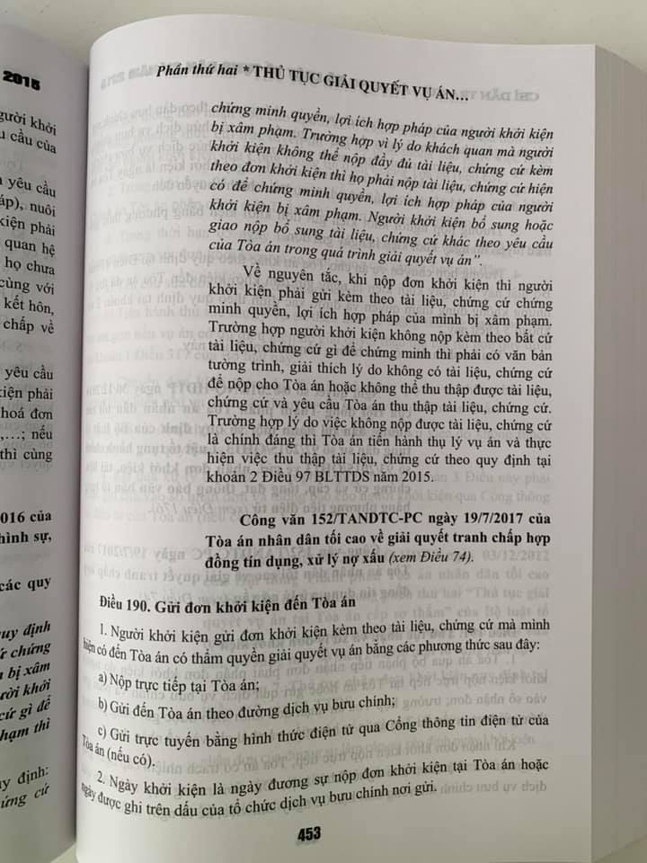 Chỉ dẫn tra cứu, áp dụng Bộ luật tố tụng dân sự năm 2015 Tác giả: TS. Nguyễn Thuý Hiền (Phó Chánh án Toà án nhân dân tối cao, nguyên Thứ trưởng Bộ Tư Pháp ) - ThS Tạ Đình Tuyên NXB: Lao động Khổ 19 x 27 cm Số trang: 918 trang