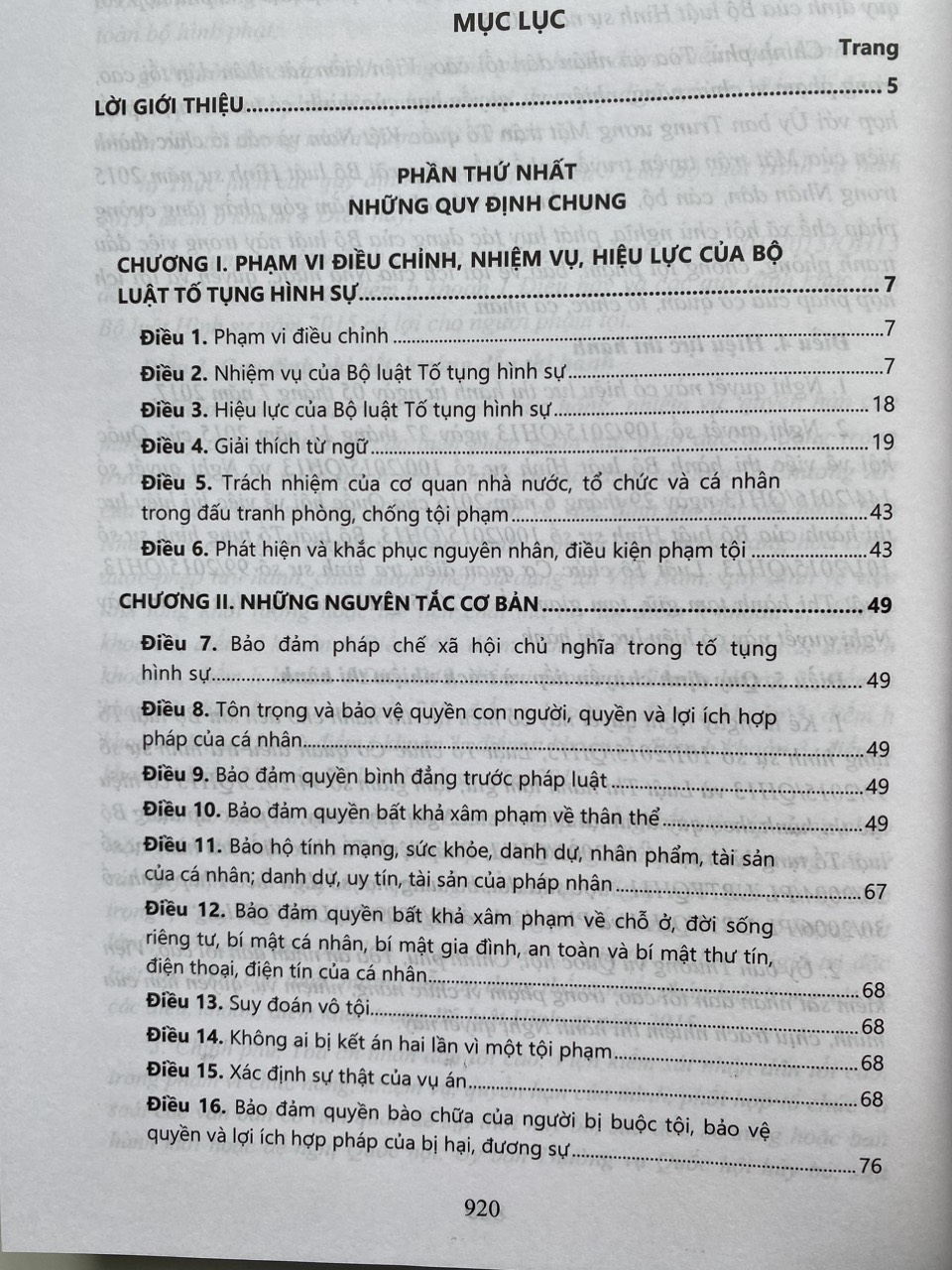 Cuốn sách gồm 9 phần, 510 điều, quy định trình tự, thủ tục tiếp nhận, giải quyết nguồn tin về tội phạm, khởi tố, điều tra, truy tố, xét xử và một số thủ tục