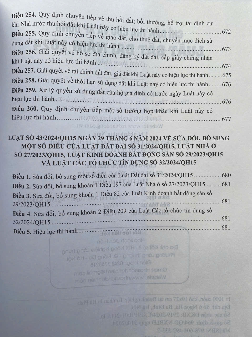 Chỉ dẫn tra cứu áp dụng luật đất đai số 31/2024/QH15 được sửa đổi, bổ sung bởi luật số 43/2024/QH15 Tác giả: Ths. Nguyễn Biên Thùy và ThS. Phạm Thị Hằng (đồng chủ biên) Nhà