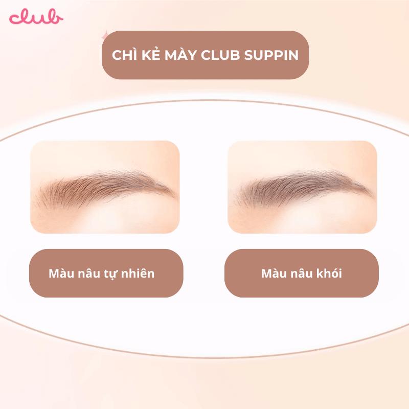 - Chì kẻ mày Club Suppin với 3 tính năng trong 1 cây kẻ mắt nhỏ gọn, cho bạn sở hữu đôi lông mày đẹp chỉ trong nháy mắt, tạo nên cấu trúc lông mày như mong muốn theo cách tự nhiên nhất.