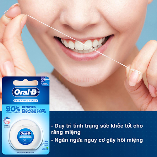 THÔNG TIN SẢN PHẨM Chỉ nha khoa Oral-B Essential Floss (50m) Bàn chải đánh răng không thể làm sạch những nơi khó tiếp cận, và đó là nơi mảng bám tích tụ Với lớp phủ