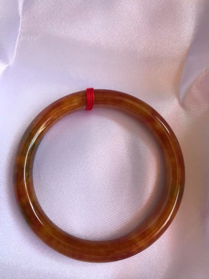 💕💦💕Vòng cẩm thạch Tứ Quý đẹp 51mm xdầy 7,5mm Màu Cam Bông Xíu Xanh Nhẹ bóng đẹp lắm 50kg-56kg480k