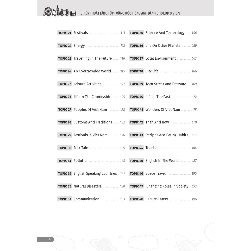 Chiến thuật tăng tốc - vững gốc tiếng Anh dành cho lớp 6,7,8,9 là cuốn sách giúp học sinh tra cứu nhanh ngữ pháp và từ vựng THCS để phục vụ quá trình học, ôn tập và luyện thi vào lớp 10