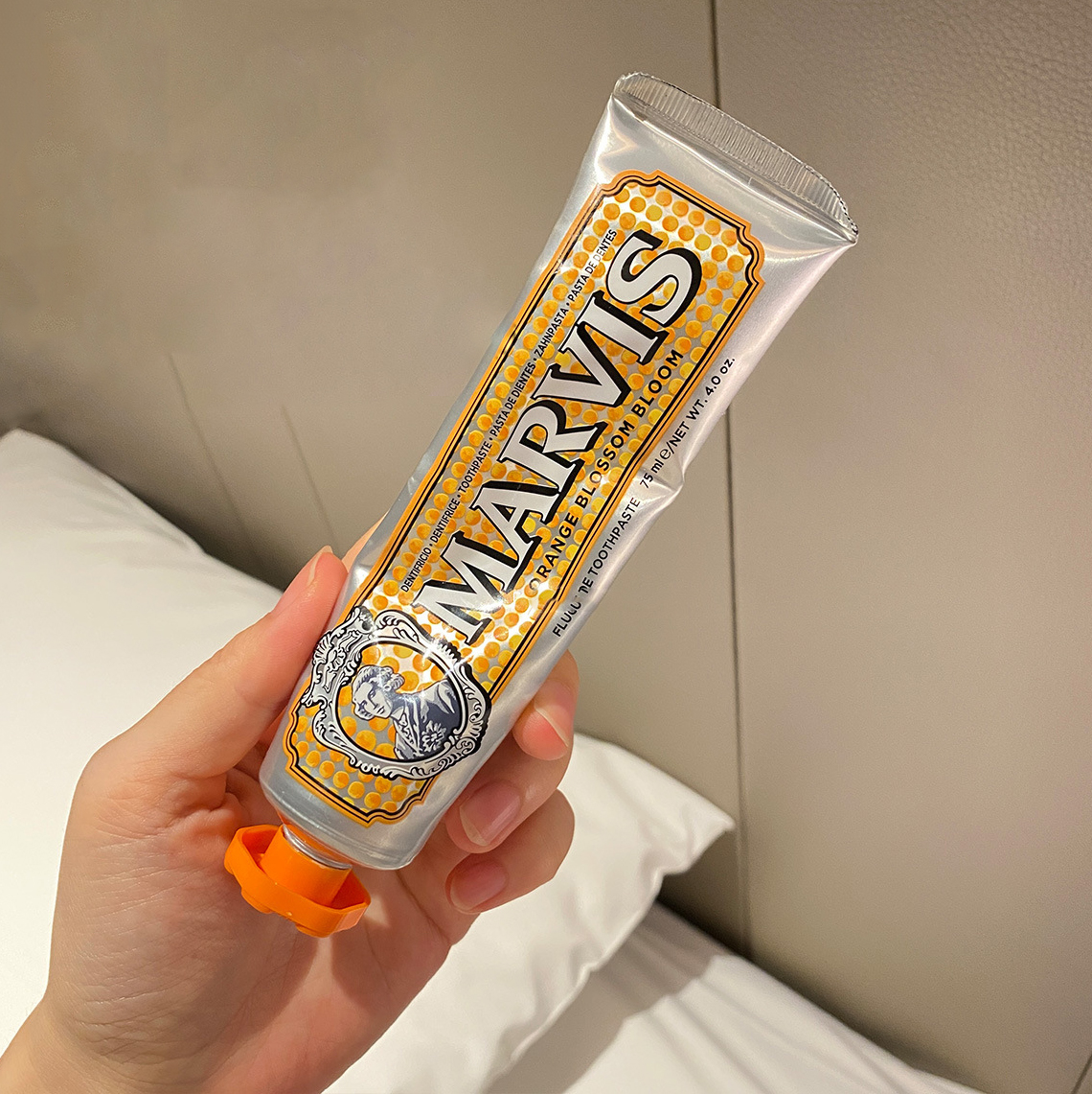 - Cho một ít kem đánh răng Marvis ra bàn chải đánh răng của bạn