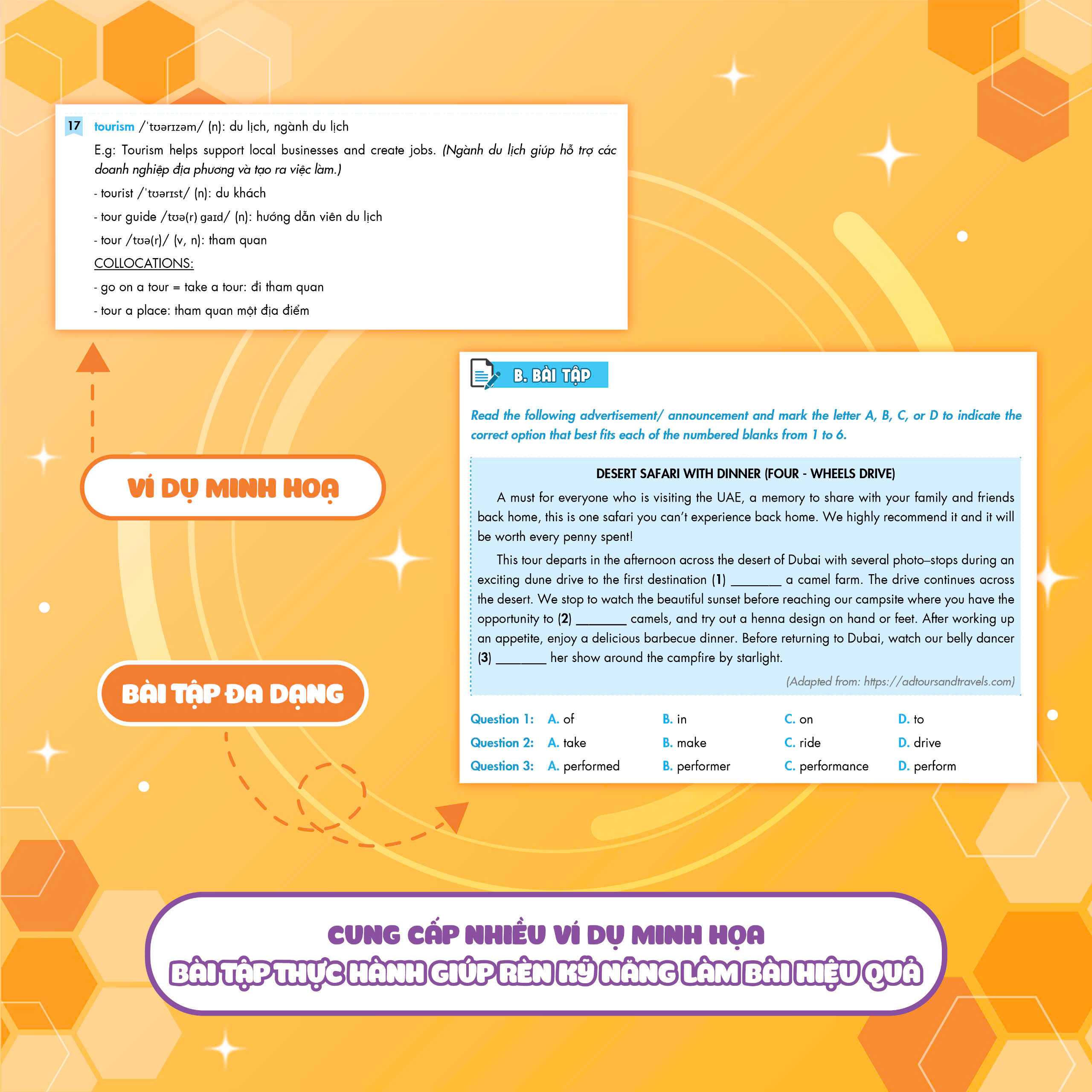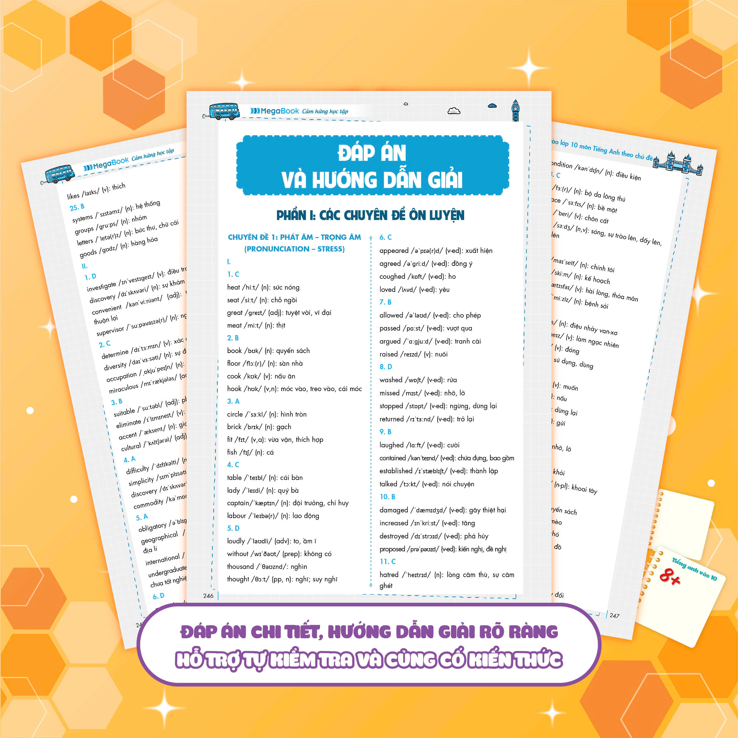 Tổng hợp đầy đủ kiến thức theo chuyên đề: Bao quát toàn diện các phần trọng tâm gồm Phát âm – Trọng âm, Từ vựng – Đọc hiểu, Ngữ pháp, giúp học sinh ôn tập có hệ thống và tiết kiệm thời gian.
