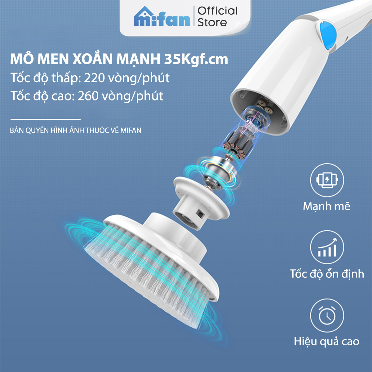 CÔNG SUẤT MẠNH MẼ: Mifan C3 có công suất 84W và moment xoắn lên tới 35 Kgf.cm, cùng với tốc độ xoay 260 vòng/phút, đảm bảo hiệu suất làm sạch mạnh mẽ và hiệu quả.