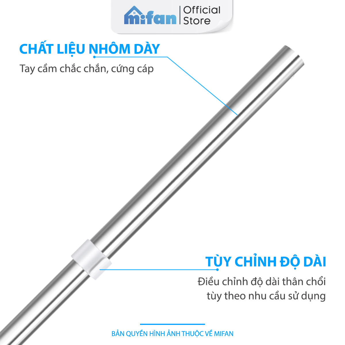 ĐIỀU CHỈNH ĐỘ DÀI VÀ GÓC QUAY: Có thể điều chỉnh độ dài tới 1M30 và góc quay rộng 84°, thuận tiện cho việc làm sạch ở các vị trí khó tiếp cận.