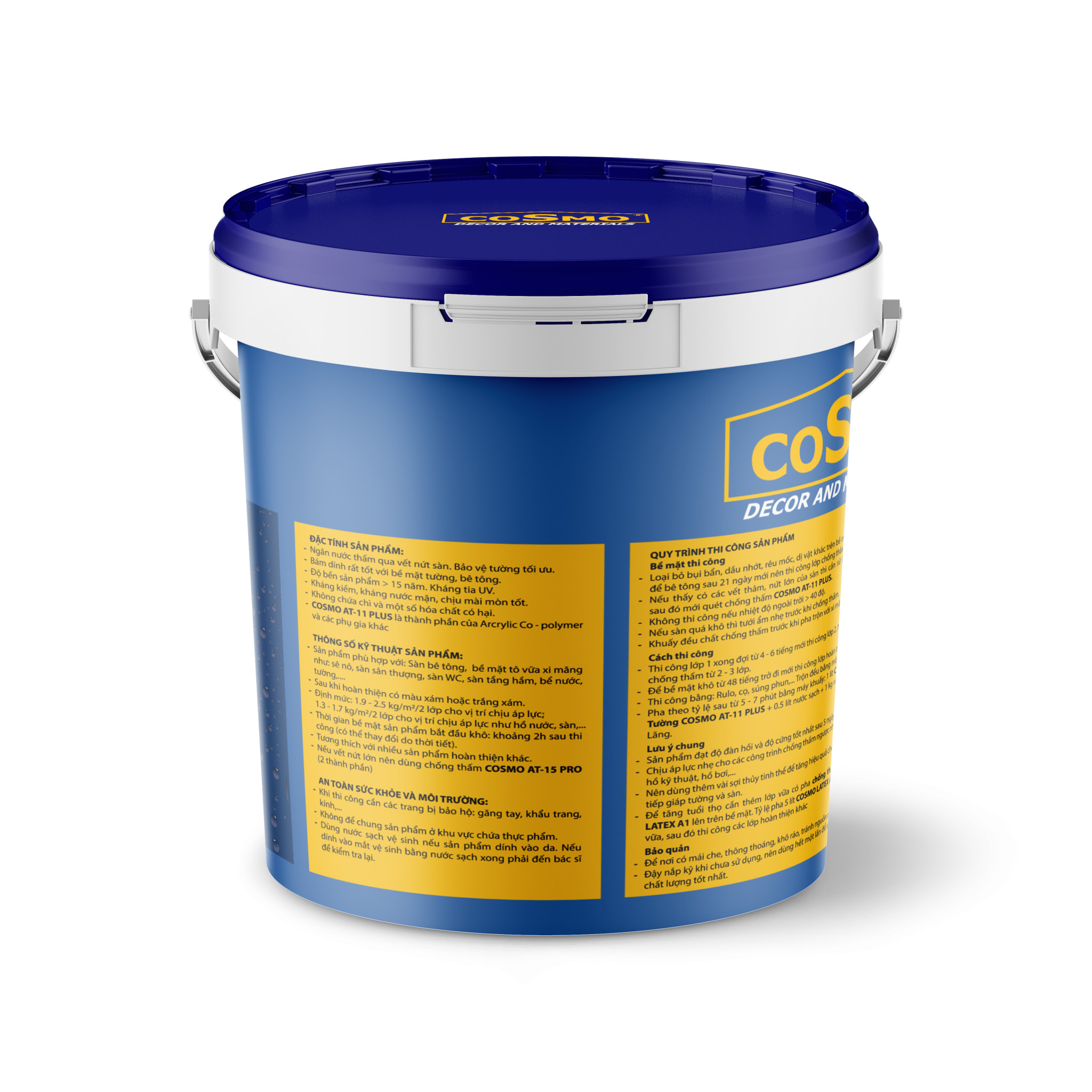 Mua tại TiktokCOSMO đang phát triển với nhiều dòng sản phẩm đa dạng, đáp ứng nhu cầu về các sản phẩm chống thấm chuyên dụng được hãng COSMO nghiên cứu và phát triển, đã sản xuất ra rất nhiều dòng sản phẩm chống thấm chất lượng mà giá thành lại tương đối ổn định cũng như phù hợp với thị phần của Việt Nam. Giới thiệu xô chống thấm sàn COSMO AT-11 PLUS: Chất chống thấm sàn COSMO AT-11 plus là sản phẩm chất lượng cao của hãng COSMO chuyên dùng để chống thấm có tác dụng chống thấm nước hiệu quả cho rất nhiều công trình. ĐẶC TÍNH SẢN PHẨM: