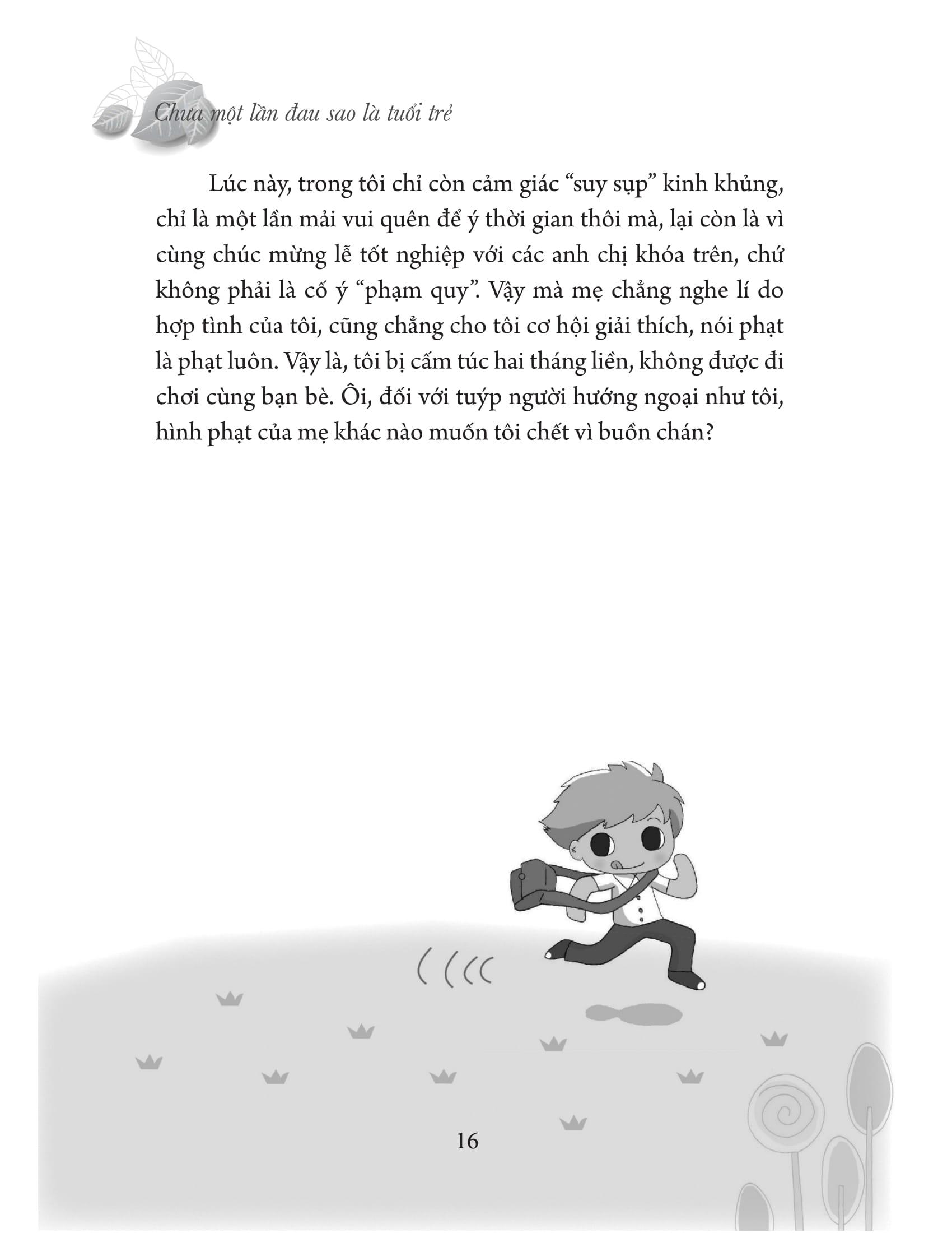 Nếu có thể làm cho bản thân mình trở nên kiên cường và hiểu biết hơn thì những vấp ngã kia có sá gì? Chỉ cần bên cạnh bạn có những đôi tay sẵn sàng chìa ra nâng đỡ, có những bờ vai cho bạn tựa vào, có những cái ôm động viên khích lệ, vậy thì quá trình trưởng thành của bạn vĩnh viễn không hoài phí, mà còn nhận được nhiều hơn. Cuốn sách này gồm 45 câu chuyện về những nỗi ưu phiền thời thanh xuân của bất kì ai trong chúng ta, hãy mang theo nó và lòng can đảm tiến về phía trước để có những trải nghiệm, cảm nhận và tìm ra lời giải cho những nỗi đau đớn mà bạn đang ôm giữ trong lòng…