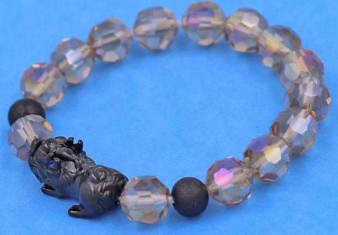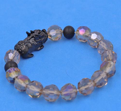 ✨Chuỗi tay Tỳ Hưu inox 2 Bi Mix Pha Lê Xám Nâu cắt giác VFLGXMNTHEHB10 - Chuỗi tay Tỳ Hưu Phong Thủy