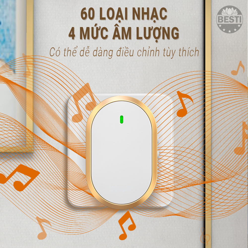 Chuông Cửa Không Dây Thông Minh Besti YBT01 (1 Nút Bấm, 1 Chuông ), Chống Nước, Khoảng Cách Sử Dụng Hiệu Quả 300M, 60 Loại Nhạc Chuông, 4 Mức Điều Chỉnh Âm Lượng - Hàng Chính Hãng
