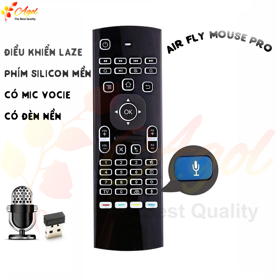 - Đối với tivi box sử dụng, người dùng cần cài Google sau đó để tìm kiếm cần click vào biểu tượng Mic trên thiết bị hoặc ứng dụng hỗ trợ tìm kiếm voice. Sau khi click thì sẽ hiện ra thông báo mời ra lệnh, người dùng bấm giữ nút Mic trên MX3 Pro Voice và ra lệnh. Đợi HĐH hoặc App hiển thị nhận lệnh thì bỏ giữ nút Mic (Lưu ý: Mỗi lần thao tác ra lệnh bằng giọng nói chỉ có 30 giây, nếu quá 30 giây bạn sẽ phải thao tác lại) Cách bật đèn nền khi sử dụng: Góc phải bên dưới điều khiển sẽ có 1 phím biểu tượng bóng đèn như hình dưới. Khi bấm nút bật đèn nền lên, ánh sáng nhẹ phản quang sẽ giúp người dùng nhìn rõ hơn bàn phím khi thao tác Có phím bật tắt đèn nền rất tiện dụng Tính năng nổi bật bàn phím chuột bay KM800Voice Pro (MX3 voice Pro)