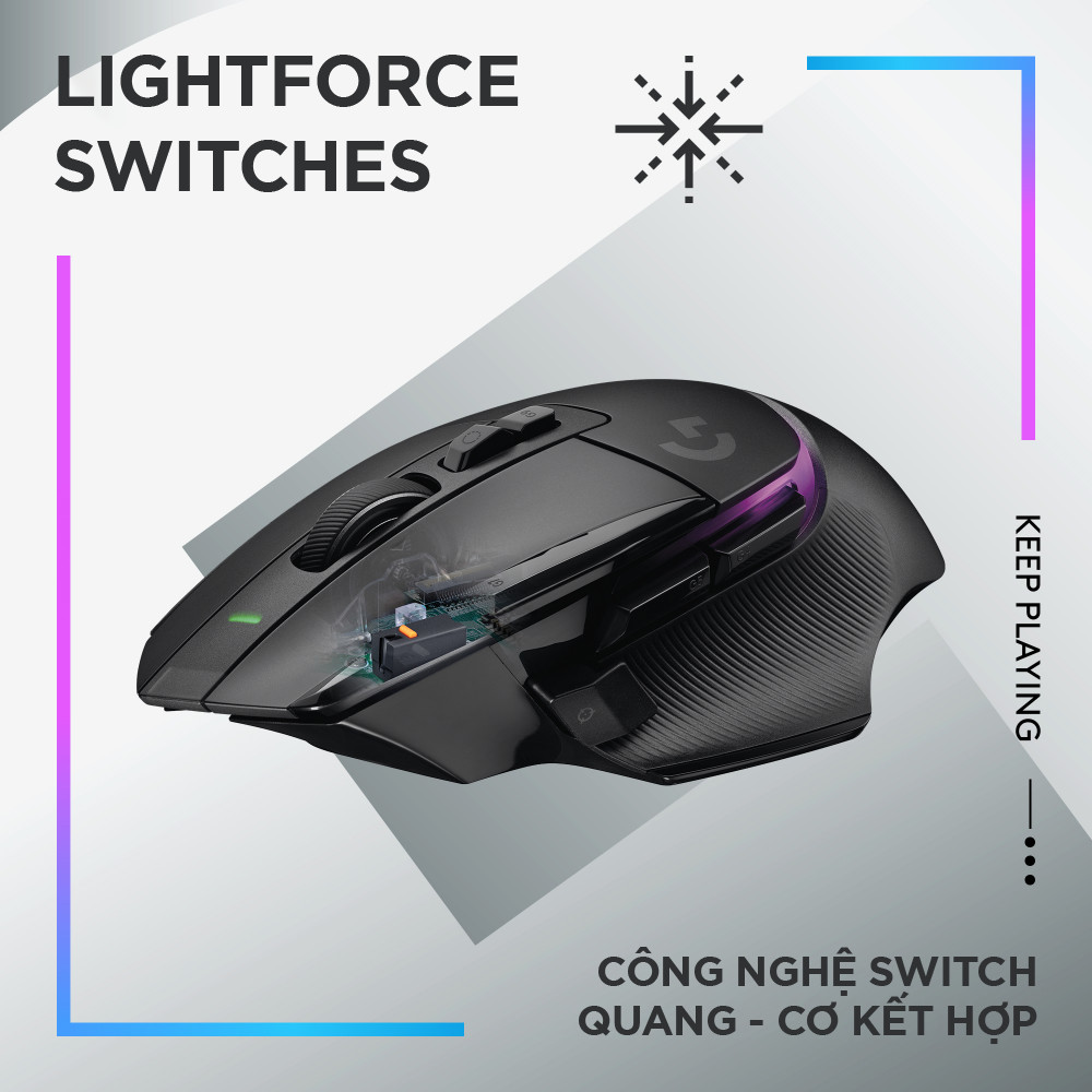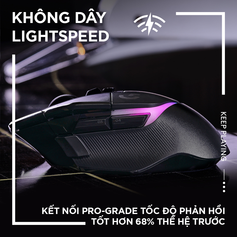 - MÔ TẢ SẢN PHẨM Logitech G502 X PLUS là sự bổ sung mới nhất cho dòng G502 huyền thoại. Được thiết kế lại và sáng chế lại với các công nghệ chơi game tiên tiến nhất, bao gồm các phím switch lai LIGHTFORCE đầu tiên của chúng tôi, LIGHTSPEED không dây cấp độ chuyên nghiệp, LIGHTSYNC RGB 16.8 triệu màu và Cảm biến quang học HERO 25K. Logitech G502 X PLUS cũng tương thích với POWERPLAY — do đó nó không bao giờ hết năng lượng. CÁC ĐẶC ĐIỂM NỔI BẬT Công nghệ LIGHTFORCE SWITCH: Các phím switch quang học - cơ học đột phá, đạt được tốc độ và độ tin cậy cao. Không dây LIGHTSPEED: đạt được tốc độ phản hồi nhanh hơn 68% so với thế hệ trước. Với hiệu suất đáng kinh ngạc của công nghệ LIGHTSPEED, G502 X PLUS LIGHTSPEED cũng đạt được mức thời lượng pin lên tới 140 giờ. RGB Lightsync: Cho phép chiếu sáng toàn dải quang phổ năng động với khả năng kiểm soát hoàn toàn khoảng 16,8 triệu màu sắc rực rỡ trên dãy 8 đèn LED. Tùy chỉnh tất cả với phần mềm G HUB bao gồm các hiệu ứng theo phương tiện và cá nhân hóa nâng cao. Cảm biến HERO 25K: Cảm biến chơi game tiên tiến nhất đạt được độ chính xác đến từng micromet với khả năng làm mịn, lọc và tăng tốc. Với tính năng theo dõi ưu việt và tiêu thụ năng lượng thông minh, HERO 25K đem lại hiệu suất, độ chính xác và mức tiết kiệm điện vô song.