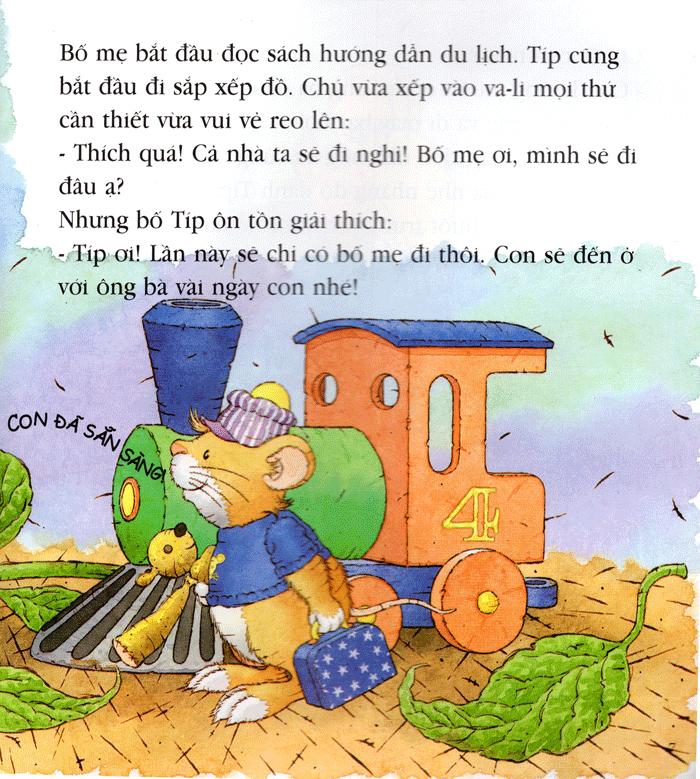 Chuột Típ đã xếp vào chiếc va-li nhỏ bộ quần áo ngủ, bàn chải đánh răng, một quyển sách để đọc và các món đồ chơi yêu thích. Đi chơi vui vẻ nhé, Típ ơi!