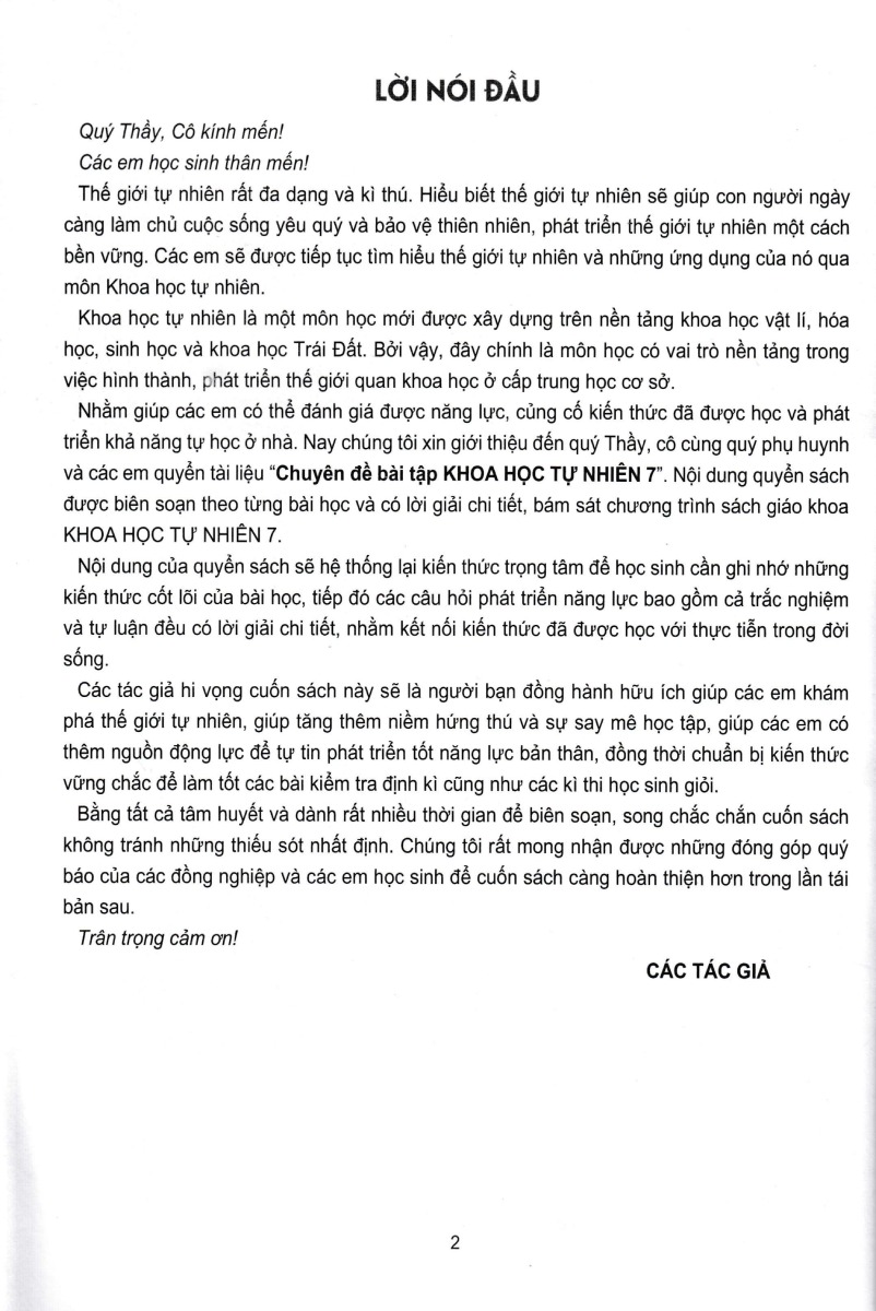 Mua tại TiktokChuyên Đề Bài Tập - Khoa Học Tự Nhiên 7 (Dùng Cho Chương Trình GDPT Mới) Quý Thầy Cô cùng quý phụ huynh kính mến! Các em học sinh thân mến! Năm học 2022 - 2023 là năm học đầu tiên áp dụng giảng dạy môn Khoa học tự nhiên ở theo Chương trình Giáo dục phổ thông 2018. Đây là môn học tích hợp các lĩnh vực khoa học tự nhiên ở cấp THCS nhằm giúp các em phát triển năng lực khoa học tự nhiên một cách tối đa phục vụ trong cuộc sống.