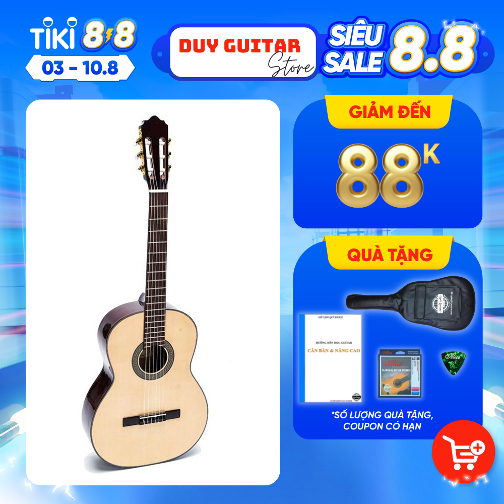 Shop Duy Guitar - đàn guitar classic chơi nhạc cổ điển Mã: DC120J Mặt: gỗ thông Eo + lưng: hồng đào chất lượng cao Cần: gỗ thao lao, có ty chống cong cần Mặt phím: