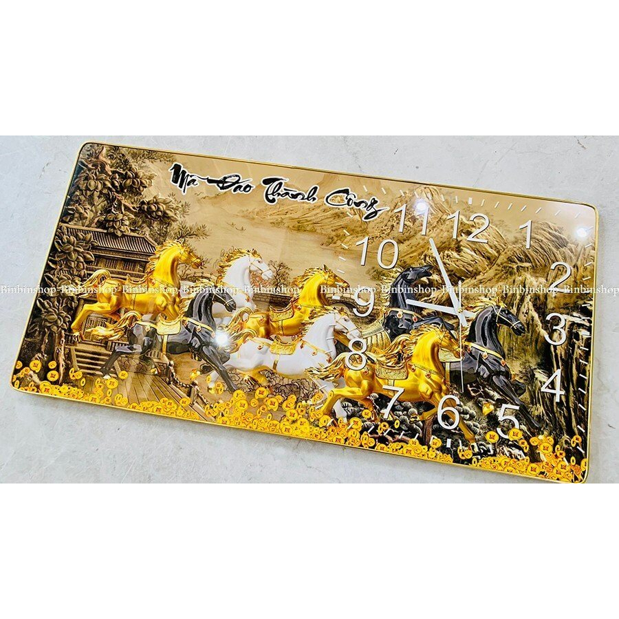 Tranh đồng hồ tráng gương mã đáo thành công