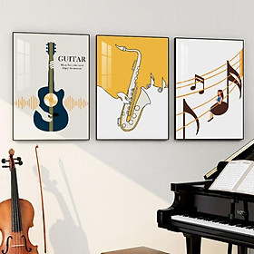 Tranh treo tường trang trí decor âm nhạc 8 - Kích thước của tranh : Kích thước : 25x35cmx3 tấm - 30x45cmx3 tấm - 40x60cmx3 tấm - 50x70cmx3 tấm - Chất liệu : Tráng gương