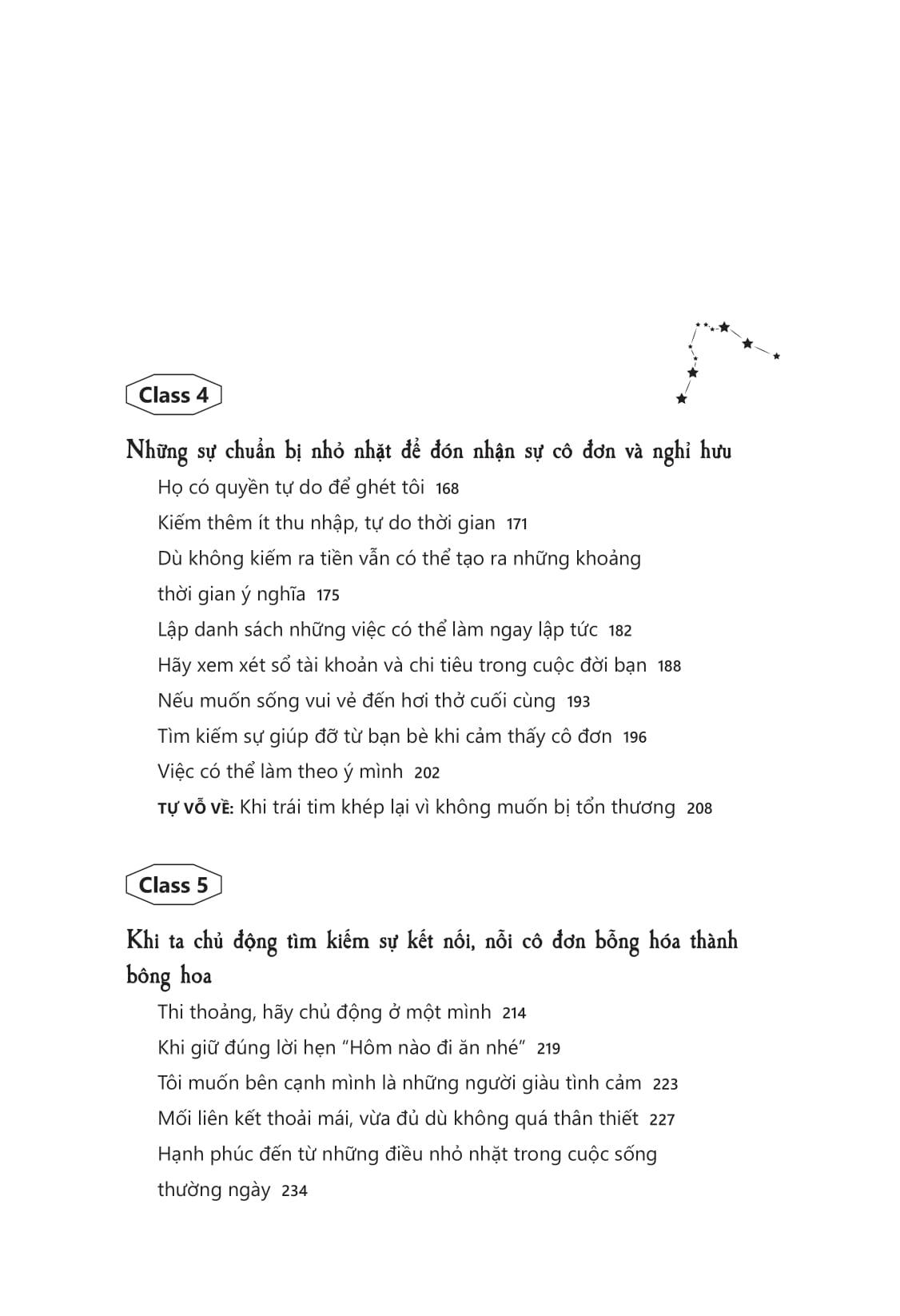 Cuốn sách này là "lớp học cô đơn" dành cho bạn, là lời an ủi cũng là lời nhắc nhở: đã đến lúc phải đối diện với con người thật của chính m.ình!