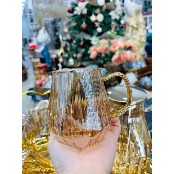 Ấm trà thủy tinh - quai vàng cao cấp - 1100ml Chất liệu thủy tinh Borosilicate chịu nhiệt cao cấp từ -20 - 150 độ C. Thiết kế quai ấm uốn cong đẹp mắt, sang
