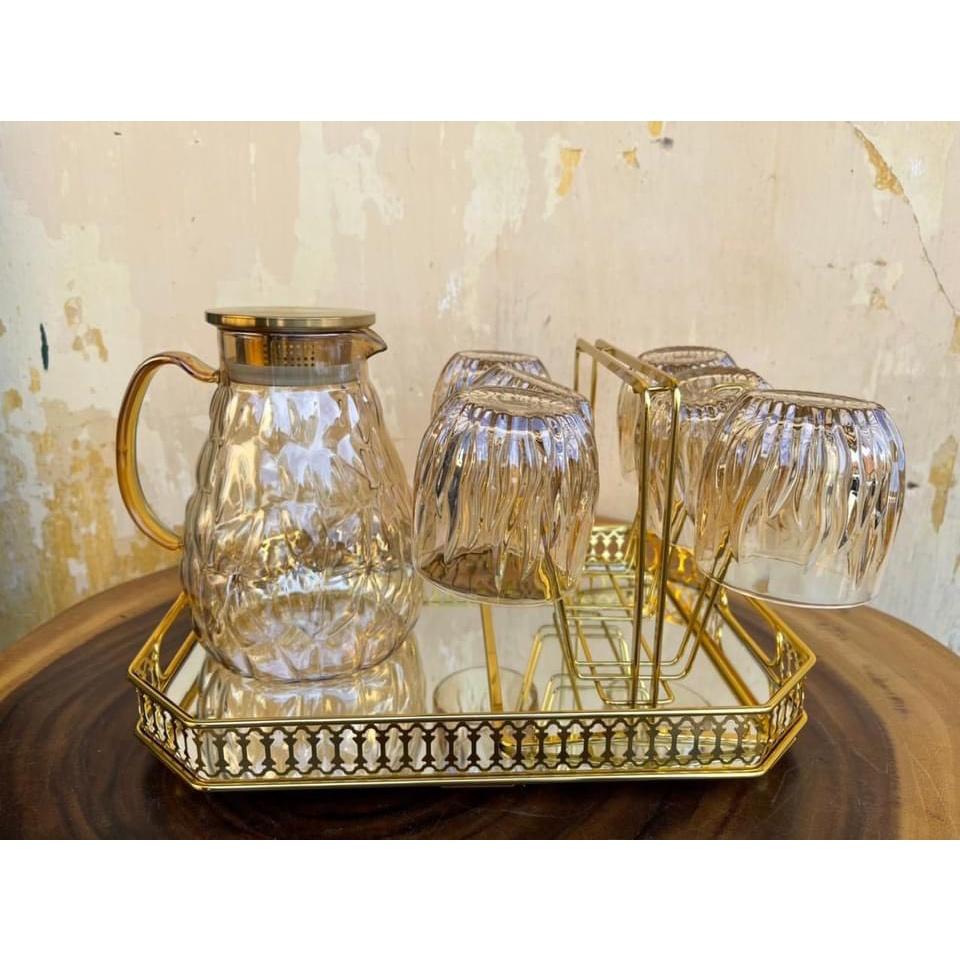 Mô tả Bộ sản phẩm: - Bộ 1 bình + 6 cốc + khay + giá úp cốc - Bình dung tích 1800ml. Nắp inox có zoăng cao su, đảm bảo an toàn cho sức