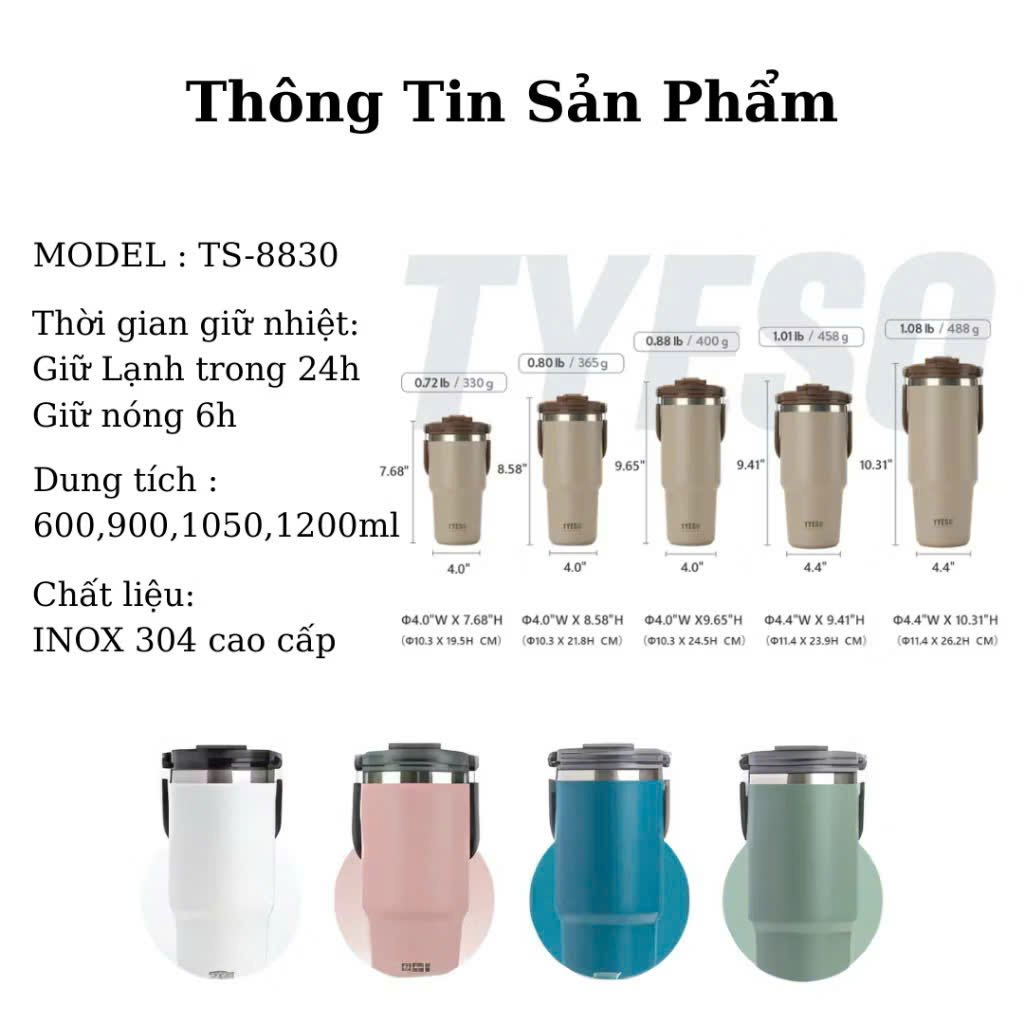 Bạn đang tìm kiếm một chiếc bình giữ nhiệt tiện lợi, đẹp mắt, và có thể mang theo suốt ngày dài? TYESO chính là lựa chọn hoàn hảo: giữ nhiệt tốt, thiết kế hiện đại, phù