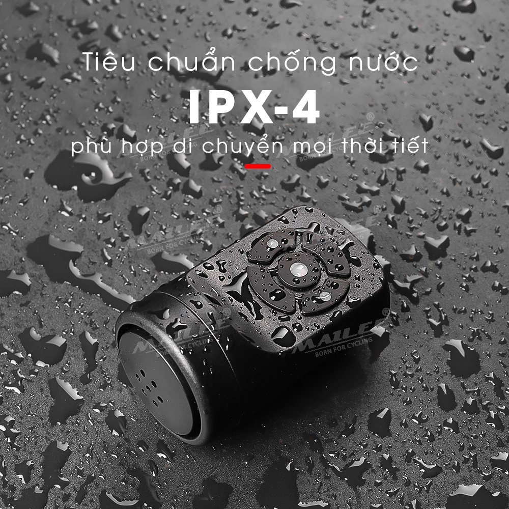 - Tiêu chuẩn chống nước IPX4, không thấm nước, phù hợp với mọi thời tiết khi di chuyển, đạp xe