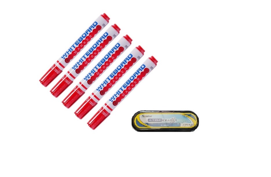✨Combo 05 Cây Bút Lông Bảng FO-WB015 Và 01 Cái Lau Bảng FO-WBE01 (Màu Đỏ)