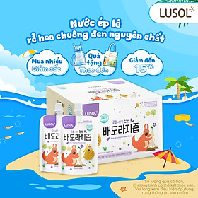 Mua tại TiktokĐỀN 10 LẦN NẾU PHÁT HIỆN HÀNG KHÔNG PHẢI HÀNG CHÍNH HÃNG. Tên sản phẩm: Combo 10 gói Nước ép lê và rễ hoa chuông đen nguyên chất Lusol cho bé từ 6 tháng tuổi. Thương hiệu: Lusol. Xuất xứ: Hàn Quốc. Hương vị: Quả lê và rễ hoa chuông đen. Trọng lượng: 100ml/gói. Chứng nhận: HACCP an toàn thực phẩm. Dành cho: Bé từ 6 tháng tuổi. HSD: 12 tháng kể từ ngày sản xuất. Aladdin Vina nhập khẩu và phân đối độc quyền Lusol tại thị trường Việt Nam. Chương trình quà tặng đặc biệt cho các sản phẩm bánh ăn dặm. Thời gian diễn ra: 01/05/2024 - Khi hết quà tặng. SỐ LƯỢNG QUÀ TẶNG CÓ GIỚI HẠN. CHƯƠNG TRÌNH CÓ THỂ KẾT THÚC SỚM HƠN DỰ KIẾN Khi mua các sản phẩm ăn dặm có giá trị đơn hàng từ 359.000 đồng trở lên và có kèm từ 01 sản phẩm nước Nhung Hươu Ki&Young sẽ được tặng ngẫu nhiên 01 Bình nước hoặc 01 Túi canvas. Riêng sản phẩm nước Nhung hươu Ki&Young khi mua từ 10 gói sẽ được tặng ngẫu nhiên 01 Bình nước hoặc 01 Túi canvas ĐỀN 10 LẦN NẾU PHÁT HIỆN HÀNG KHÔNG PHẢI HÀNG CHÍNH HÃNG. Đặc điểm nổi bật: