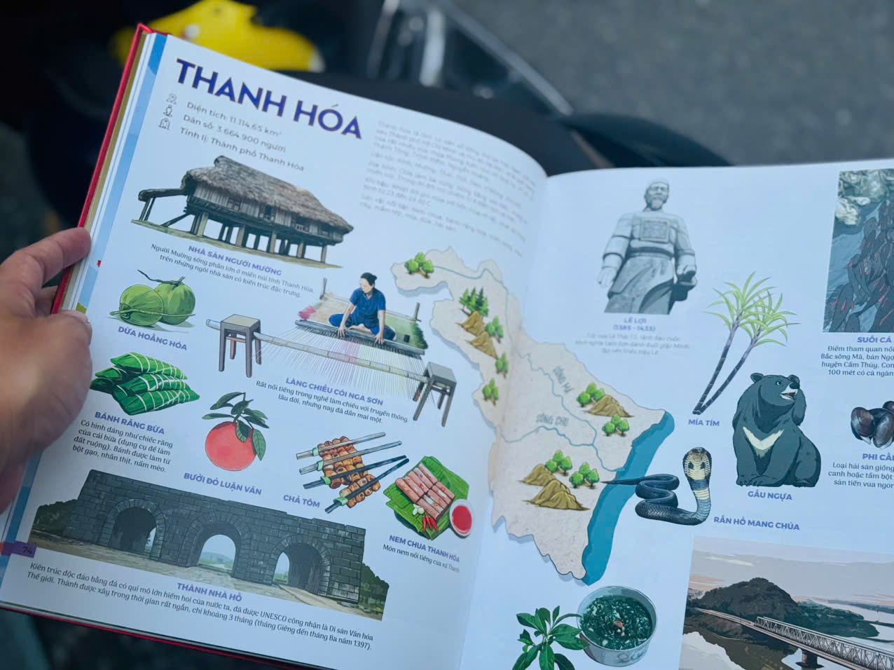 Trong khi đó, “Đất Nước Gấm Hoa” lại mở ra bản đồ chi tiết 63 tỉnh thành, nơi từng vùng đất mang trong mình những câu chuyện văn hóa, lịch sử và đặc sản độc đáo. Nếu cuốn đầu tiên cho ta thấy sự phong phú về con người, thì cuốn thứ hai cho thấy vẻ đẹp muôn hình vạn trạng của đất đai quê hương.