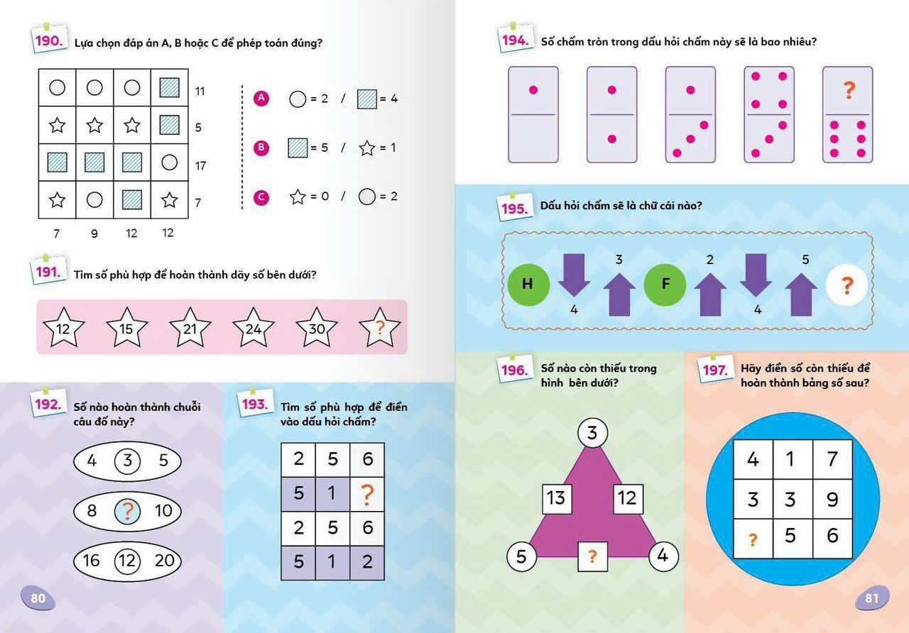 Các câu đố được thiết kế với mức độ khó từ dễ đến khó, thử thách người đọc ở nhiều mức độ khác nhau và giúp tăng cường kỹ năng tư duy toán học trong nhiều tình huống.