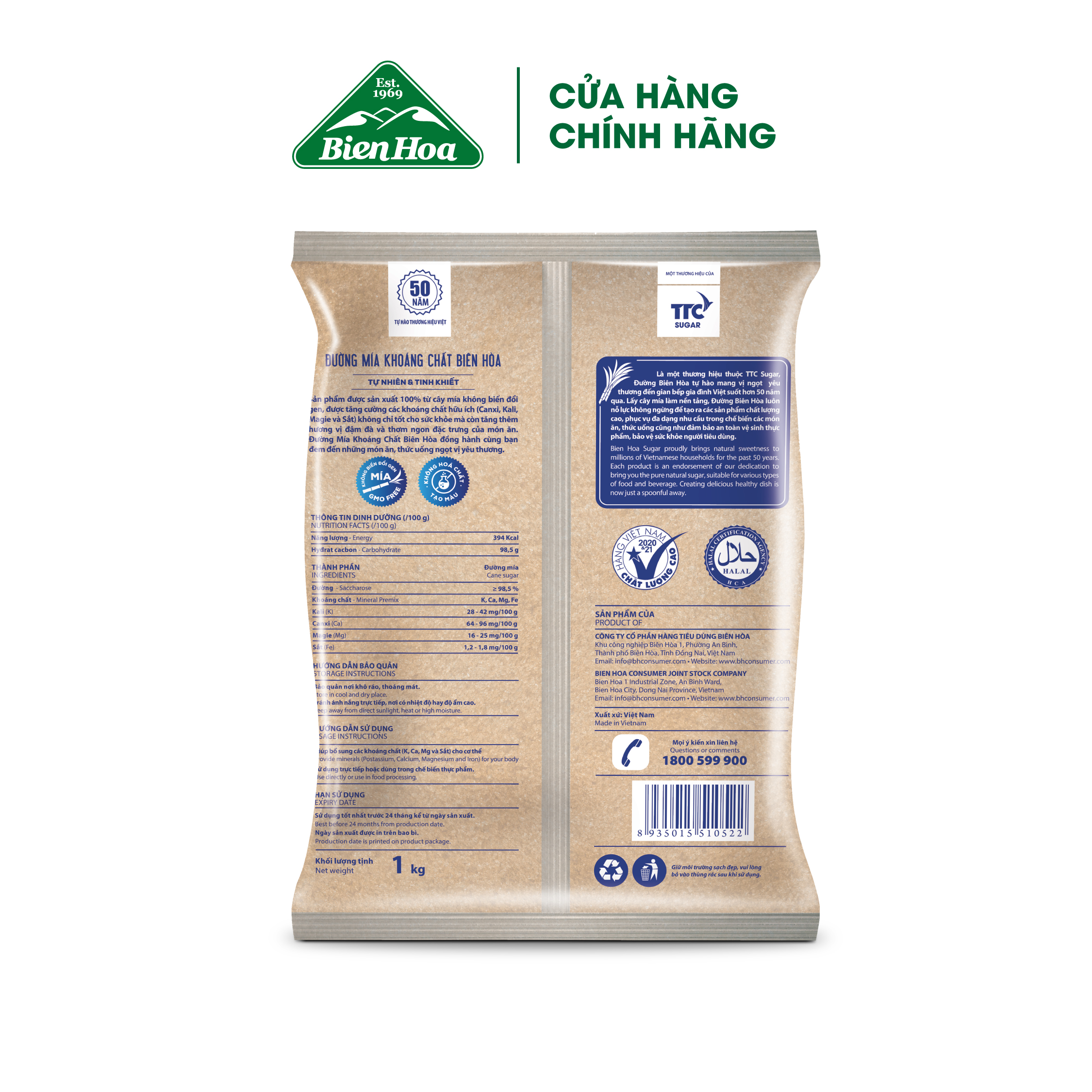 Sản phẩm được sản xuất 100% từ cây mía không biến đổi gen, được tăng cường các khoáng chất hữu ích (Canxi, Kali, Magie và Sắt) không chỉ tốt cho sức khỏe mà còn tăng thêm hương vị đậm đà và thơm ngon đặc trưng của món ăn. Đường Mía Khoáng Chất Biên Hòa đồng hành cùng bạn đem đến những món ăn, thức uống ngọt vị yêu thương. Hướng dẫn sử dử dụng: Dùng trực tiếp hoặc trong chế biến thực phẩm. Hướng dẫn bảo quản: Chỉ bảo quản trong các loại bao bì an toàn cho thực phẩm, sạch và kín, … Tránh ánh nắng chiếu trực tiếp và nơi có nhiệt độ ẩm cao.