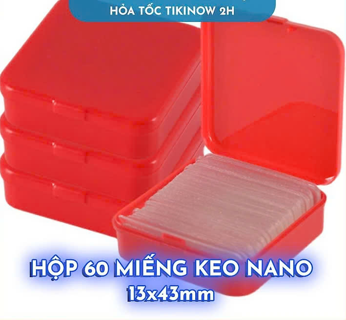 Mô tả sản phẩm Hộp 60 Miếng Keo Nano 2 Mặt Trong Suốt Chống Nước, Không Để Vết Keo Kích thước: 13 x 43mm (cỡ một ngón tay út) Chuyên dụng để dán tranh ảnh, áp phích lên tường, khi tháo không để lại vết keo. Lưu ý: chỉ dán lên bề mặt trơn bóng như gạch men, kí Không dán trên đá, tường, gạch, vôi, sơ Chất liệu nano PU keo chất kết dính hai mặt, siêu bền, tính đàn hồi tốt Chống nước tốt, chịu nhiệt và chống lạnh, tái sử dụng dễ dàng Lực dính và giữ vật dụng cực tốt, sử dụng cho mọi bề mặt Đa năng, sử dụng cho phòng tắm, phòng bếp, bàn học,…