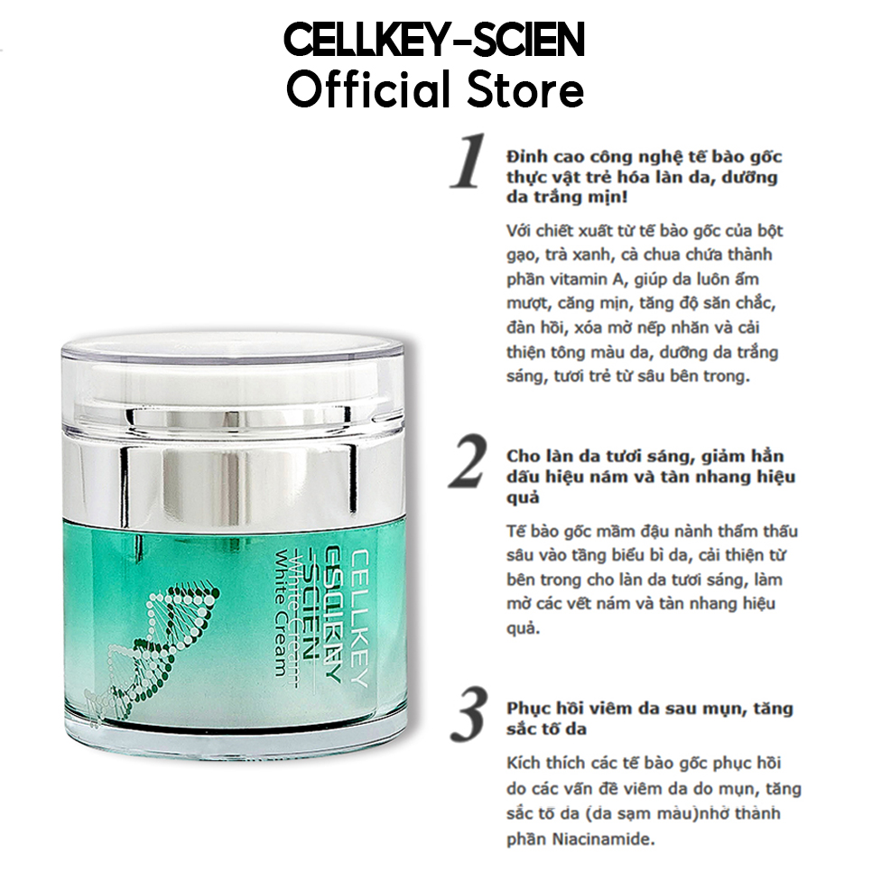 ✨Combo 2 Kem Dưỡng Trắng Da Tế Bào Gốc Hàn Quốc Cấp Ẩm Xóa Nhăn Phục Hồi Trẻ Hoá Da Và Chống Lão Hoá Cellkey-Scien White Cream (60g)